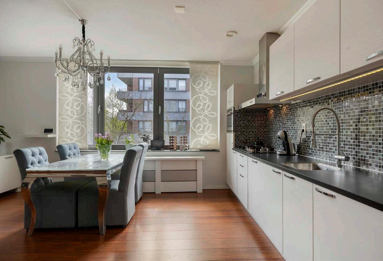 De eerste stap over de drempel van dit appartement neemt je mee in een wereld van ruimte, licht en moderne gemakken. Alles is hier tot in de puntjes afgewerkt – van de stijlvolle vloeren tot de slimme indeling. De woonkamer is riant en dankzij de grote ramen krijgt het daglicht ruim baan. Dit is waar je thuiskomt na een lange dag, neerploft op je bank en geniet van het uitzicht op de stadse dynamiek. Of je nu een serie bingewatcht of een etentje organiseert, deze woonkamer is jouw plek!