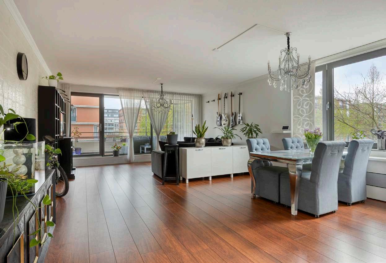 De open keuken verdient een speciale vermelding. Deze moderne keuken met strakke lijnen en hoogwaardige inbouwapparatuur nodigt uit om lekker te koken. Denk aan verse ingrediënten van de nabijgelegen Westmarket, die je met gemak kwijt kunt in de ruime koel-vriescombinatie. Pak de flessen wijn uit de koelkast, schuif je favoriete gerechten in de oven en laat de vaatwasser het werk doen terwijl jij geniet. Echt alles is hier erop gemaakt om jouw drukke leven gemakkelijk te maken.