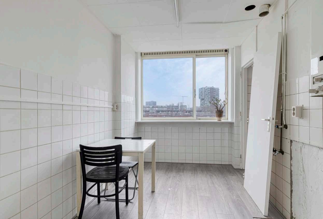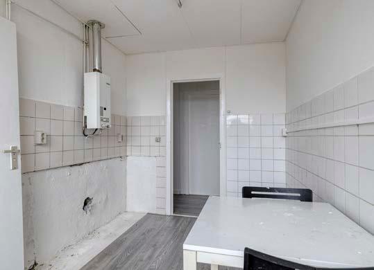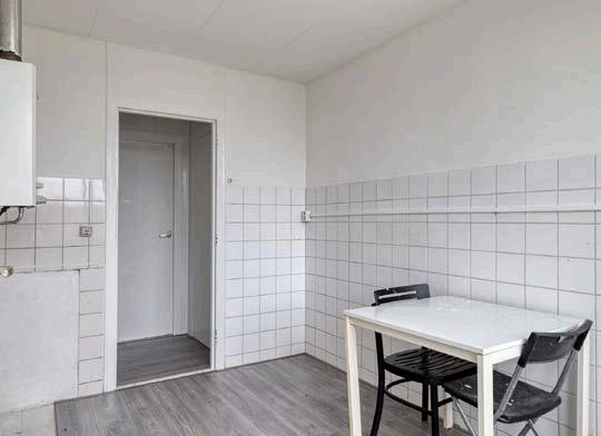 De voormalige keukenruimte biedt een mooie kans om geheel naar eigen wens en smaak een nieuwe keuken te realiseren. Hoewel de keuken momenteel niet aanwezig is, is de ruimte beschikbaar om hier een eigentijdse en functionele keuken te creëren. Ideaal voor de handige koper die van dit klusappartement zijn eigen droomwoning wil maken.