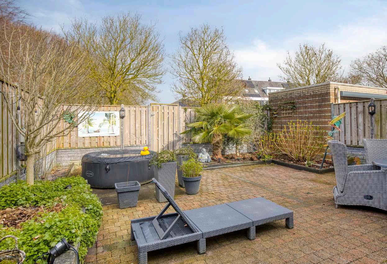 Buiten wacht de meeste serene plek van allemaal: de ruime achtertuin. Hier ervaar je elke dag het vakantiegevoel, compleet met privacy én de ruimte om samen te eten, relaxen of spelen. Dankzij de garage heb je altijd extra opslagruimte en kun je met gemak jouw fietsen of gereedschap kwijt. En laten we de omgeving niet vergeten: de rustige en veilige straat is de perfecte plek voor kinderen om te spelen of om de hond uit te laten. Je woont hier in een buurt waar buren elkaar nog begroeten en waar levendigheid hand in hand gaat met rust en comfort.
