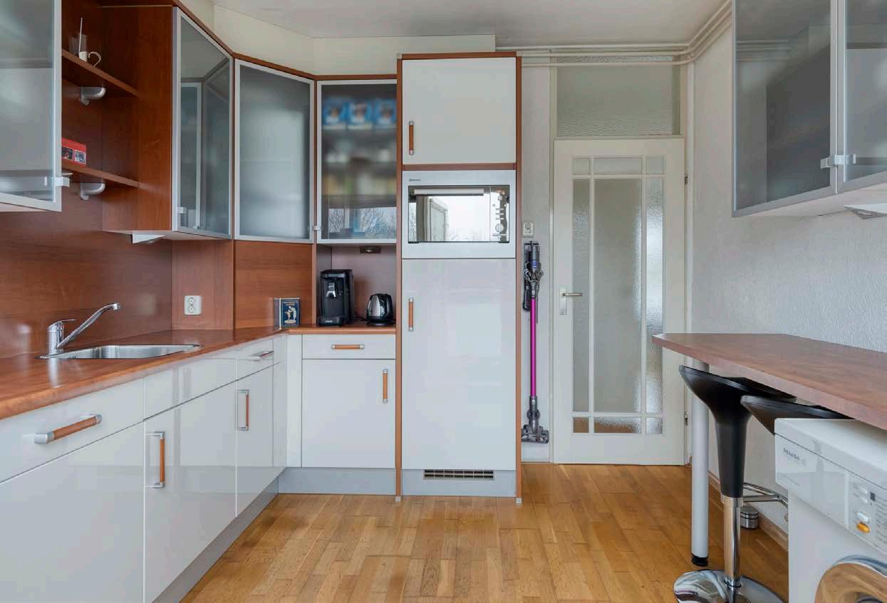 De halfopen keuken sluit mooi aan op de woonkamer en is tegelijkertijd praktisch en sfeervol. Met voldoende werkbladruimte en kastruimte kun je hier volop experimenteren met jouw favoriete recepten. Stap daarna vanuit de woonkamer direct één van de balkons op, waar een heerlijk uitzicht én frisse lucht op je wachten.