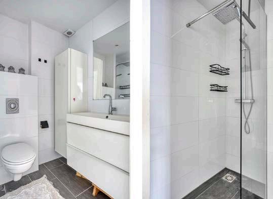 Je beschikt over een moderne badkamer met ruime inloopdouche en een apart toilet. Alles is netjes afgewerkt en heerlijk onderhoudsvriendelijk.