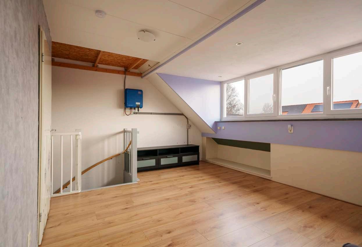 De royale vierde slaapkamer op zolder beschikt over een dakkapel en is een ideale plek voor een tienerkamer, hobbyruimte of thuiskantoor. De zolder biedt ook enorm veel bergruimte, inclusief een handige vliering én de omvormer voor de 20 zonnepanelen.