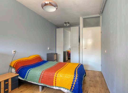 De slaapkamer is een oase van rust. Ruim genoeg voor een comfortabel tweepersoonsbed én een grote kledingkast. Via deze slaapkamer is ook de achtertuin te bereiken.