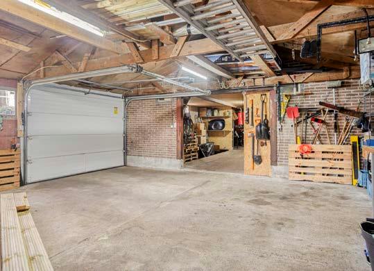 En dan de schuur. Dat is geen doorsnee schuur, maar een ruimte met ongekende mogelijkheden. In de grote garage kunnen meerdere voertuigen staan, terwijl er ook volop opslagruimte is. Maar wat deze plek echt bijzonder maakt, is het luxe appartement op de bovenverdieping.