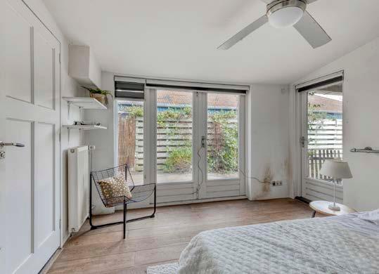 Op de begane grond vind je tevens een extra slaapkamer – een grote en lichte ruimte die perfect is voor wie niet meer dagelijks de trap op wil. Deze is vanuit de uitbouw met een tweede entreeruimte en wasmachine/droger opstelling te bereiken. Dankzij de openslaande deuren stap je hier ook zo de tuin in. Direct aangrenzend ligt de badkamer, voorzien van een ligbad, een inloopdouche, een wastafelmeubel en een tweede wandcloset. Comfort voor nu én de toekomst. De woning is op de begane grond voorzien van eikenhouten vloerdelen en natuurstenen plavuizen.