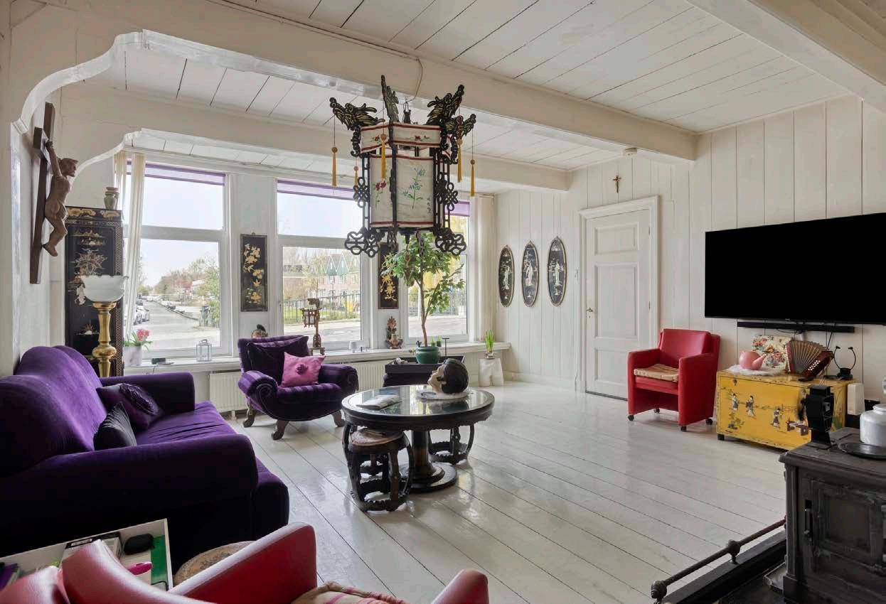 Stap verder en ontdek een voorkamer die licht en ruimte ademt. De grote ramen laten het daglicht vrij binnenstromen terwijl je geniet van een leuk uitzicht over het straatbeeld. De achterkamer is eveneens royaal en heeft een fenomenaal uitzicht over het perceel en de Zaan. Stel je een knisperend haardvuur voor tijdens een winteravond, of een maaltijd met een prachtig gedekte tafel – in deze ruimtes worden herinneringen gemaakt.