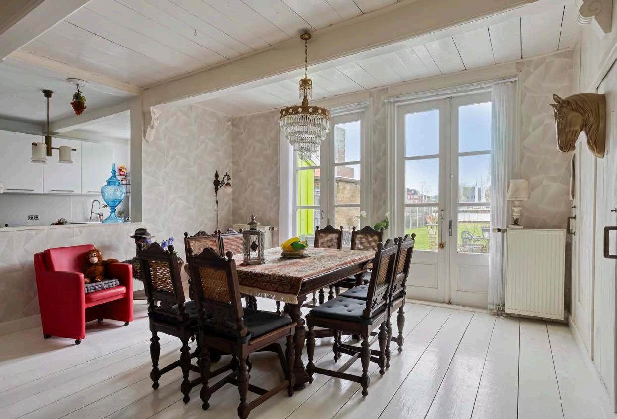 Aan de achterzijde van de woning bevindt zich de achterkamer en keuken, die perfect gepositioneerd is om direct toegang te bieden tot de tuin. Modern en praktisch of een klassieke touch? Hier kun je jouw culinaire dromen realiseren.