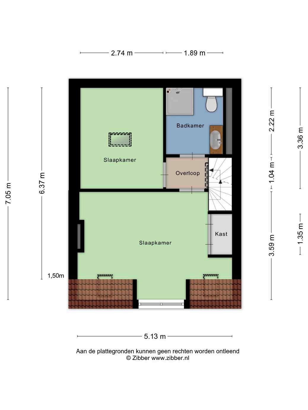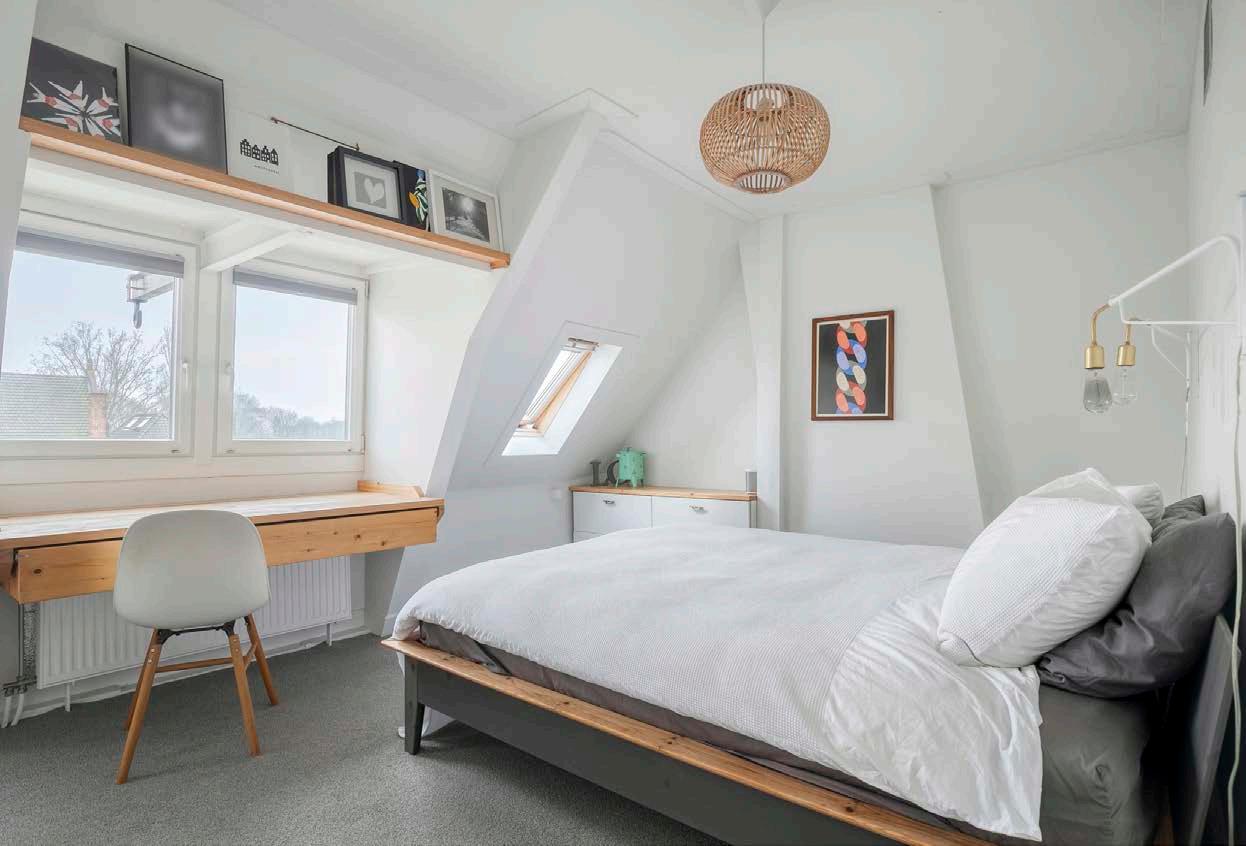 Via de trap bereik je de bovenverdieping. Hier bevinden zich twee slaapkamers en de badkamer. De kamers zijn praktisch in te delen en geschikt als slaap-, werk- of logeerkamer. De badkamer ligt aan de achterzijde op deze verdieping.