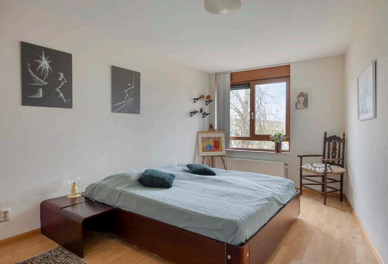 De woning beschikt over twee comfortabele slaapkamers, waarvan de grootste direct toegang heeft tot de badkamer.