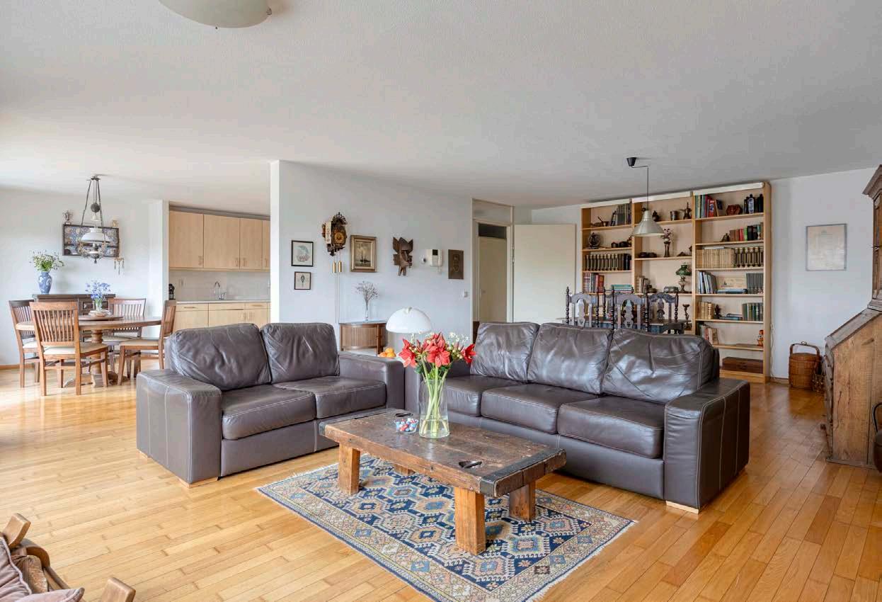 De ruime woonkamer valt op door de grote ramen, die zorgen voor natuurlijk licht. Dit maakt het een fijne plek om te ontspannen. De verbinding met het zonnige terras maakt de ruimte nog aantrekkelijker.