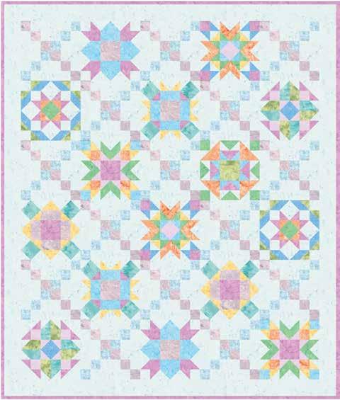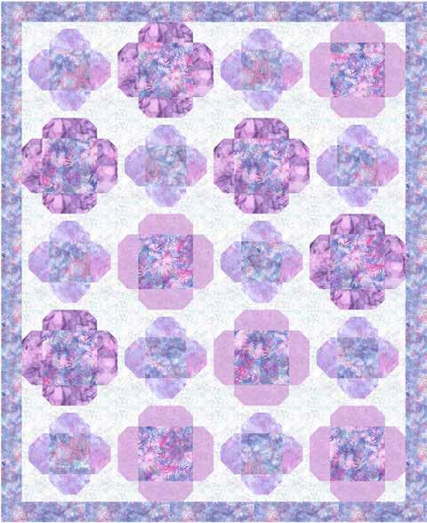 Quilt design by Our Crafty Life, featuring Hoffman Bali Handpaints and Batiks. Two sizes of lavender to blue flowers will delight you in this soft palette. Traditional piecing, using the Stitch and Flip method.