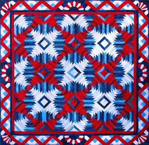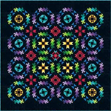 Quilt design by Twister Sisters, featuring Hoffman Bali Hand-dyes and Batiks.