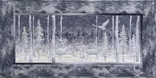 Hear the echo of snow and experience the soft light of the moon reflection with this stunning Winter wall hanging, featuring McKenna Ryan’s Jinglebell Woods signature digital collection. This kit includes everything needed to create one wall hanging. Binding, border and backing fabrics are included as well as McKenna Ryan’s Enchanted Forest Pattern.