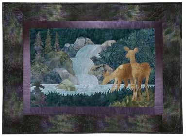 This McKenna Ryan classic wall hanging features a deer family as they begin their day in peace. Dusk and Dawn kits are sold separately, but can be hung as a two-part wall hanging. Laser kit includes all fabrics pre-cut and pre-fused ready to sew!