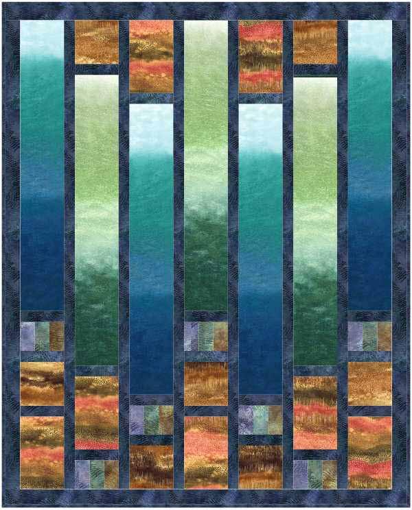 Choose 4 coordinating colors of a selvage-to-selvage lightto-dark ombré fabric to make a stunningly simple queen- or king-size quilt.