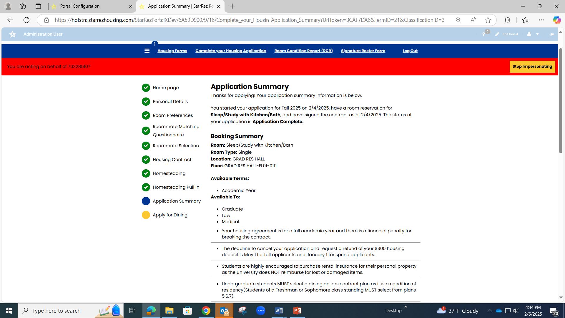 1. Paid the $300 Housing Deposit and Enrollment fee (if new to Hofstra)