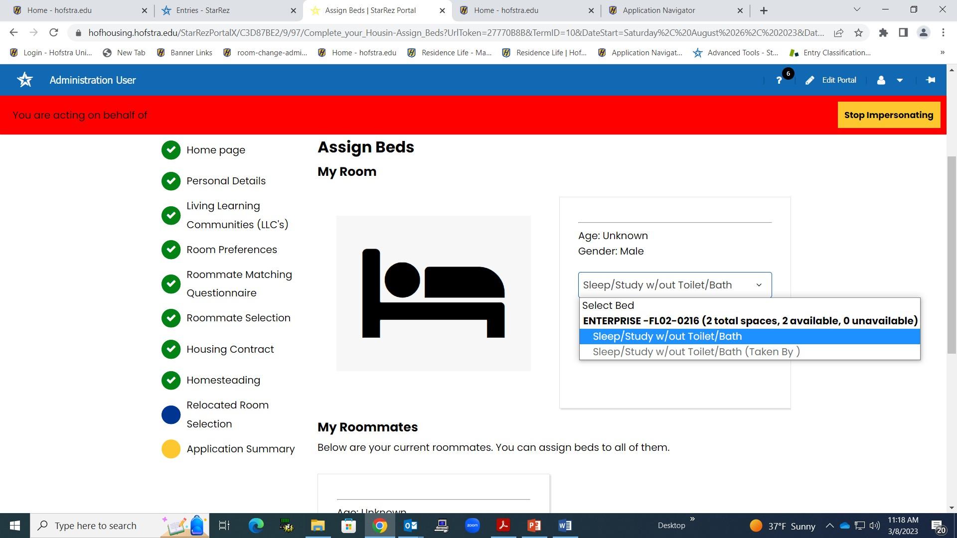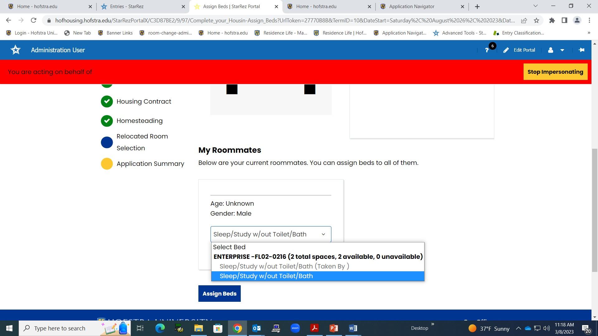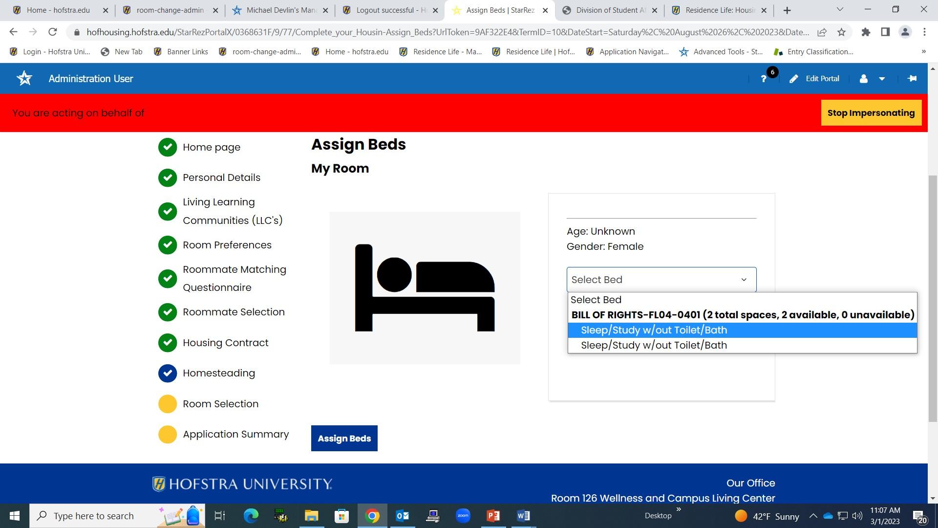 • Click on “Sleep/Study w/out toilet/Bath” then on “Assign Beds”