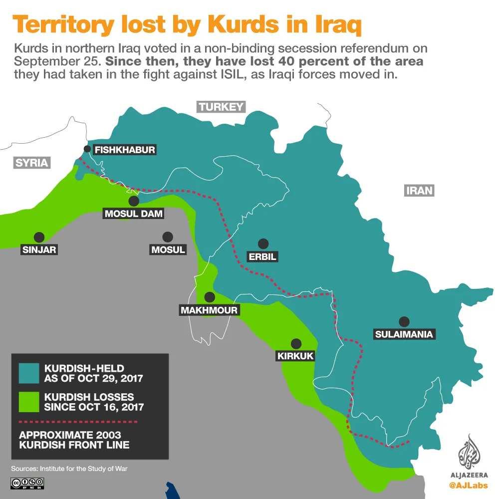 52 Chughtai, Alia, et. al. “Territory lost by Kurds in Iraq.” Al Jazeera. November 1, 2017. https://www.aljazeera.com/news/2017/11/1/territory-lost-by-kurds-in-iraq