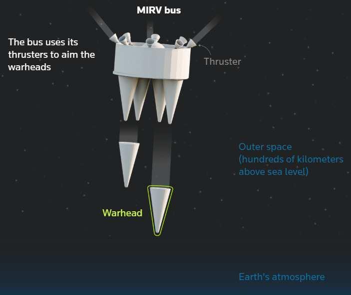 6: (a) MIRV bus prior to launch and the MIRV bus orienting warheads mid -launch (b)36