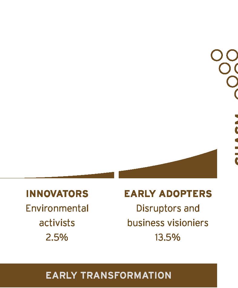 Lastly, synergies between activists (innovators) and entrepreneurs (early adopters) need to be carefully executed, as the language of activists must be used but also appeal to a broader audience, as well as connecting the movement to other overlapping causes. (See Enthoven & Thelken, 2022, and Section 4.2.4 in this report.)