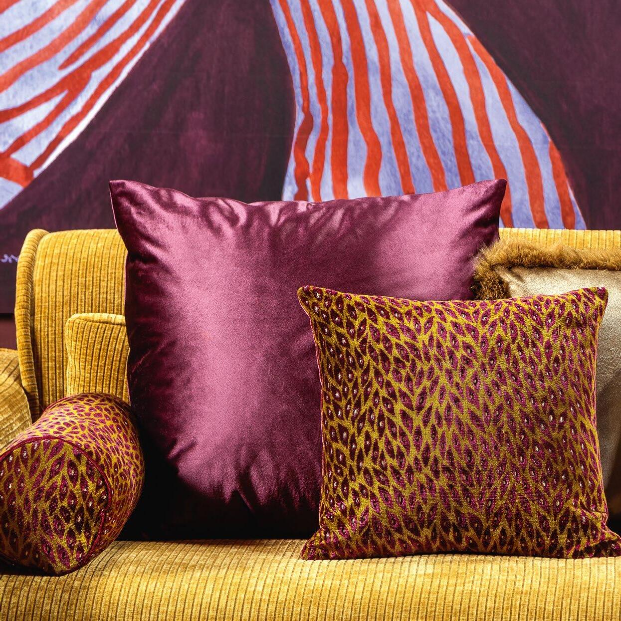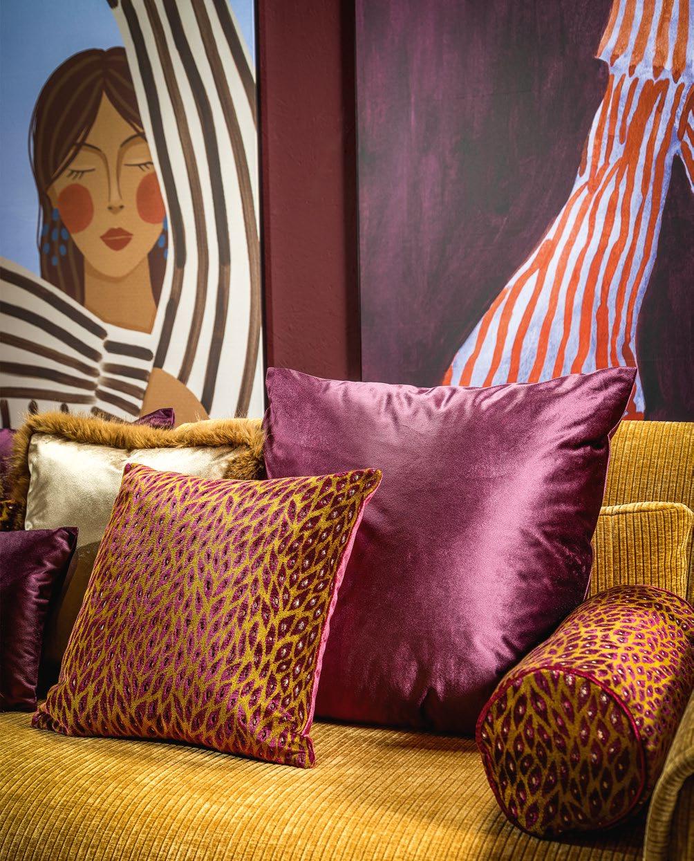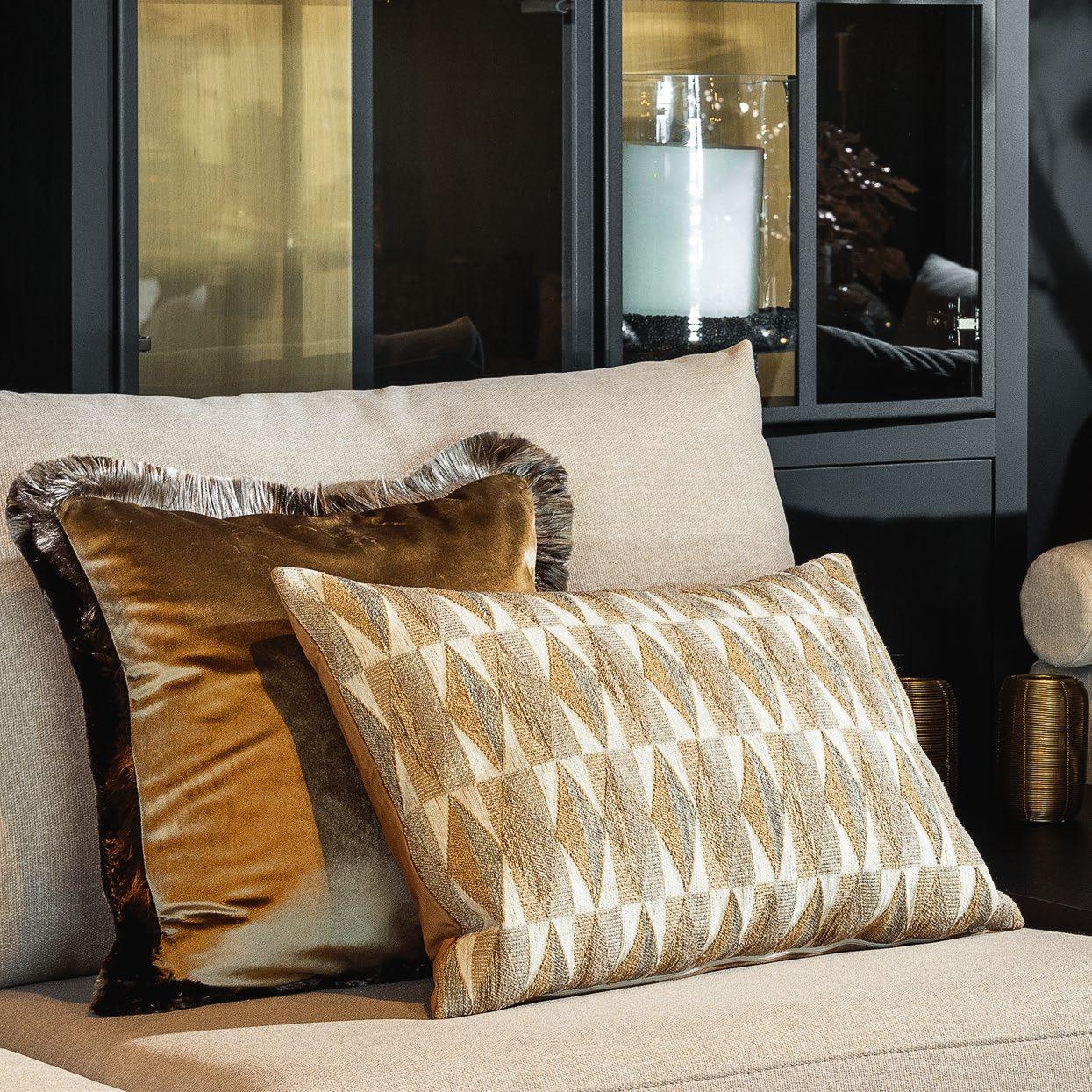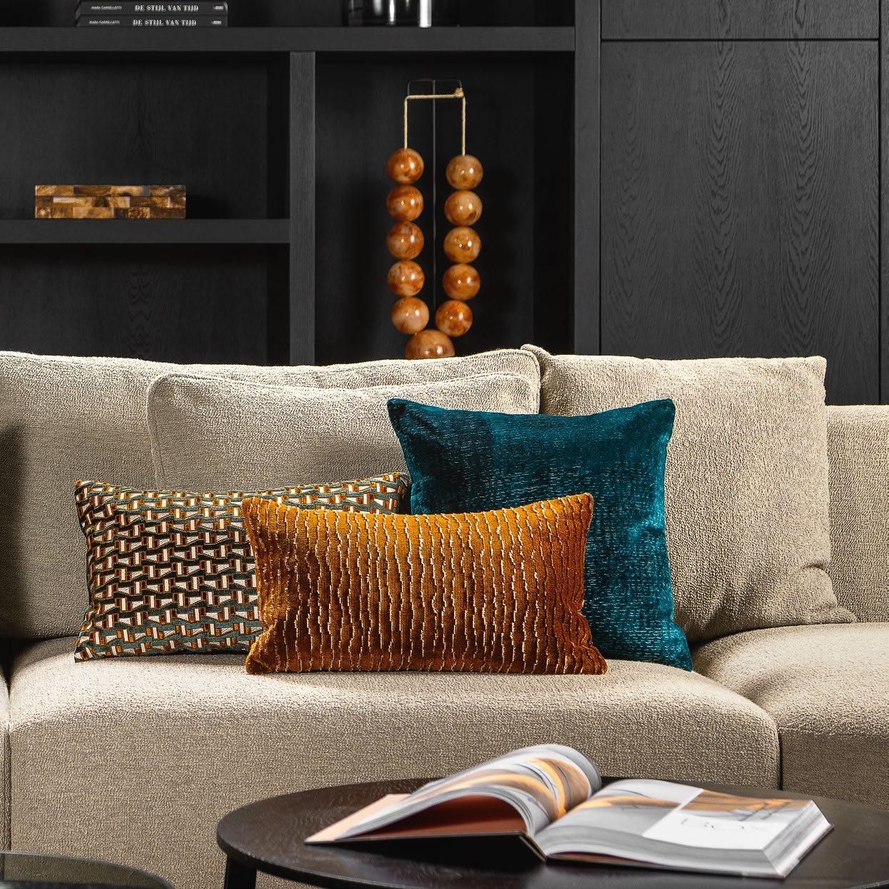 je verwonderen door de sprankelende dessins en diepe texturen van deze sierkussens.