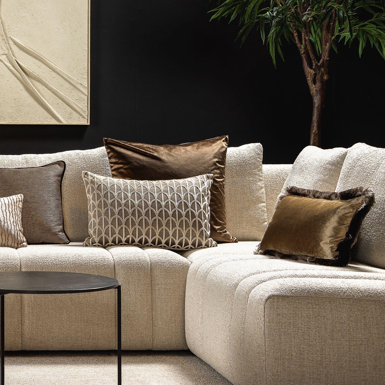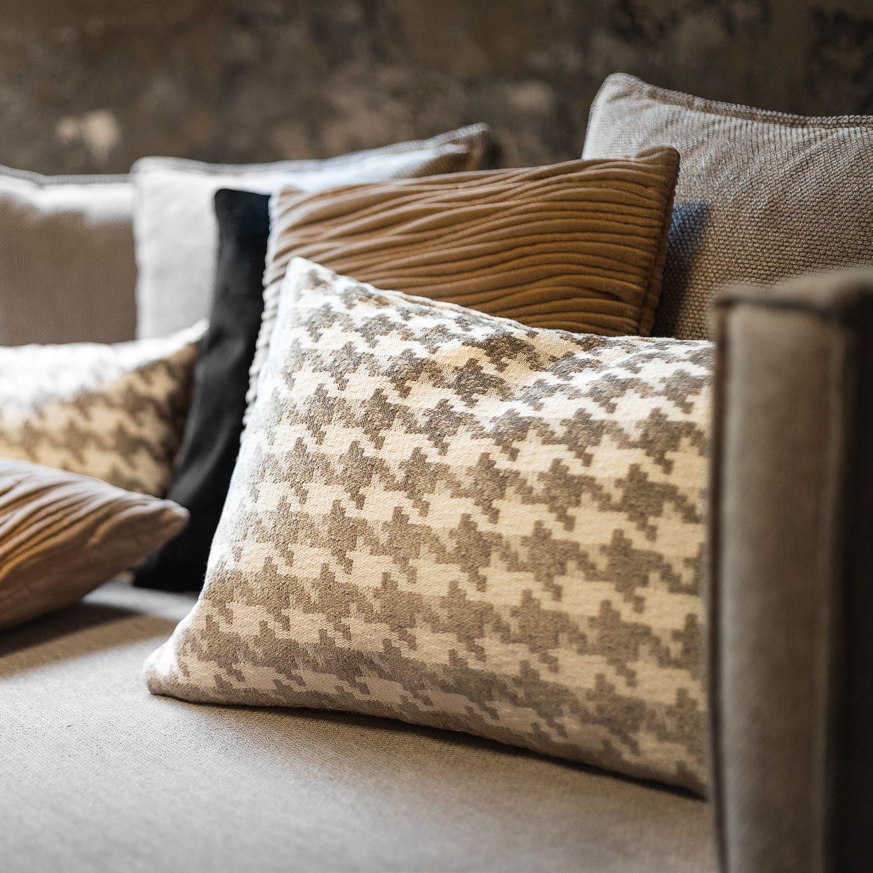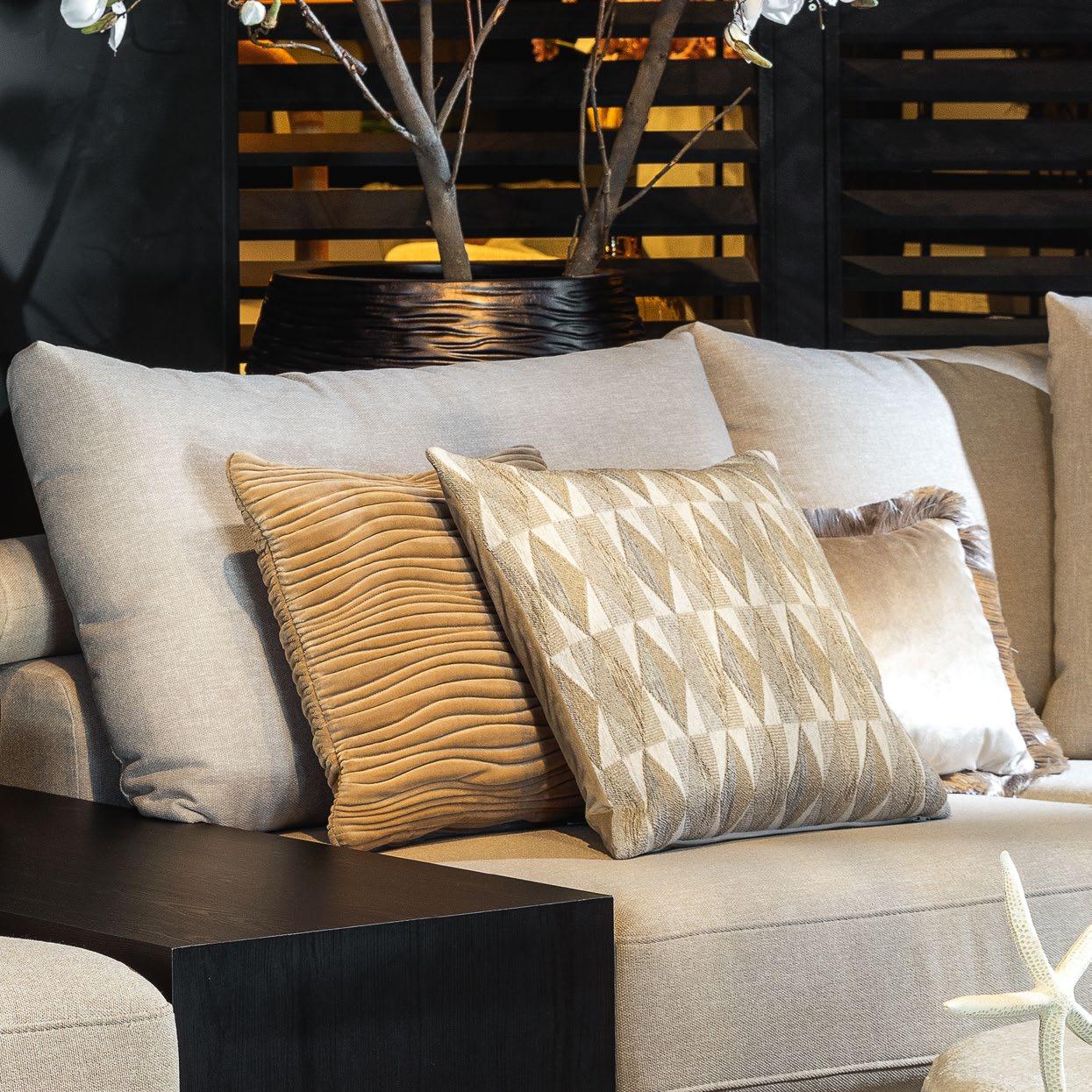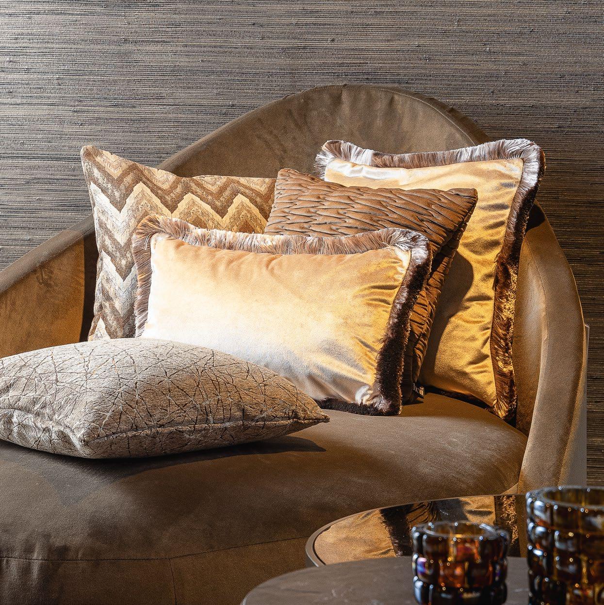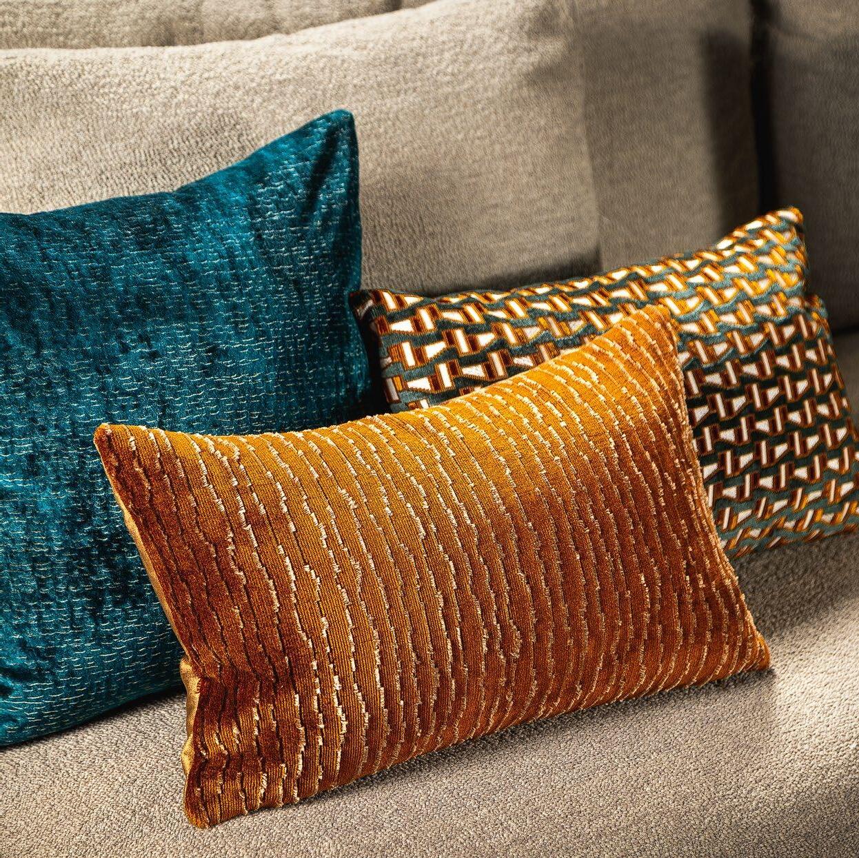 je verwonderen door de sprankelende dessins en diepe texturen van deze sierkussens.