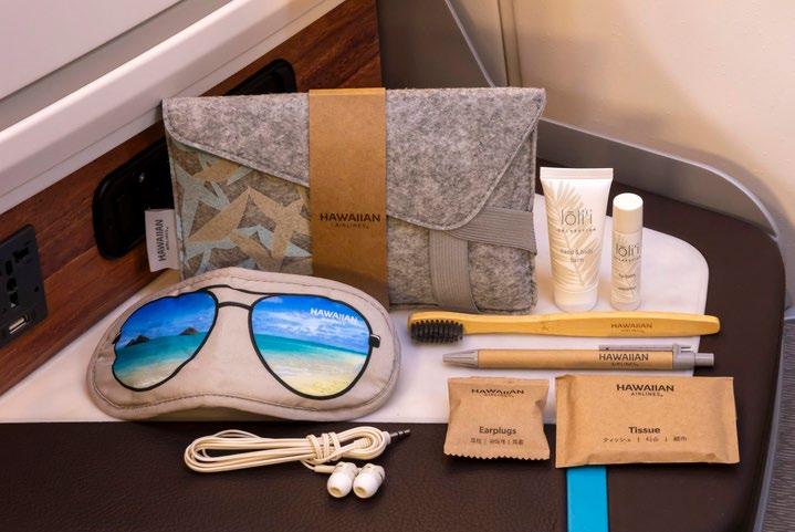 To prepare for the 787-9s, we explored ways to enhance our onboard service while reducing waste – in line with our goal to phase out single-use plastics from our cabins by 2029 and source more local products. As part of that effort, in October we unveiled new, more sustainable in-flight amenities and soft goods in partnership with Hawai’i lifestyle brand Noho Home.