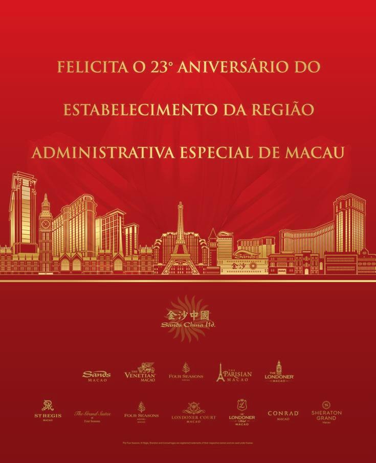 A SANTA CASA DA MISERICÓRDIA FELICITA A REGIÃO ADMINISTRATIVA ESPECIAL DE MACAU PELA PASSAGEM DO SEU 23.º ANIVERSÁRIO E DESEJA A TODOS UM FELIZ NATAL A PRESIDENTE DO CONSELHO REGIONAL DAS COMUNIDADES PORTUGUESAS DA ÁSIA E OCEÂNIA, COMENDADORA RITA SANTOS, FELICITA A REGIÃO ADMINISTRATIVA ESPECIAL DE MACAU DA REPÚBLICA POPULAR DA CHINA PELA PASSAGEM DO 23º. ANIVERSÁRIO DO SEU ESTABELECIMENTO