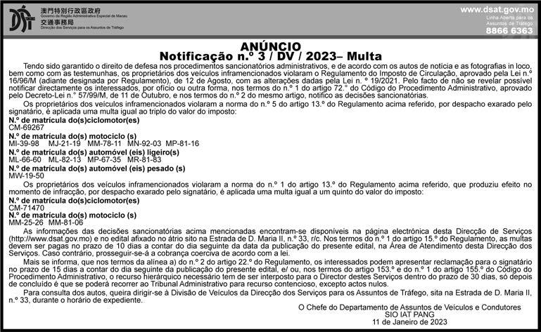Venho por este meio informar as pessoas indicadas no n.º 1 do artigo 26.ºA do Regulamento Administrativo acima referido de que podem apresentar objecção por escrito no prazo de 30 dias, contados a partir da data da publicação do aviso, ao IAM. A objecção escrita deve ser entregue no escritório dos assuntos de cemitérios da Divisão de Higiene Ambiental do IAM, sito no 3.º andar do Edifício Comercial Nam Tung, na Avenida da Praia Grande n.º 517.