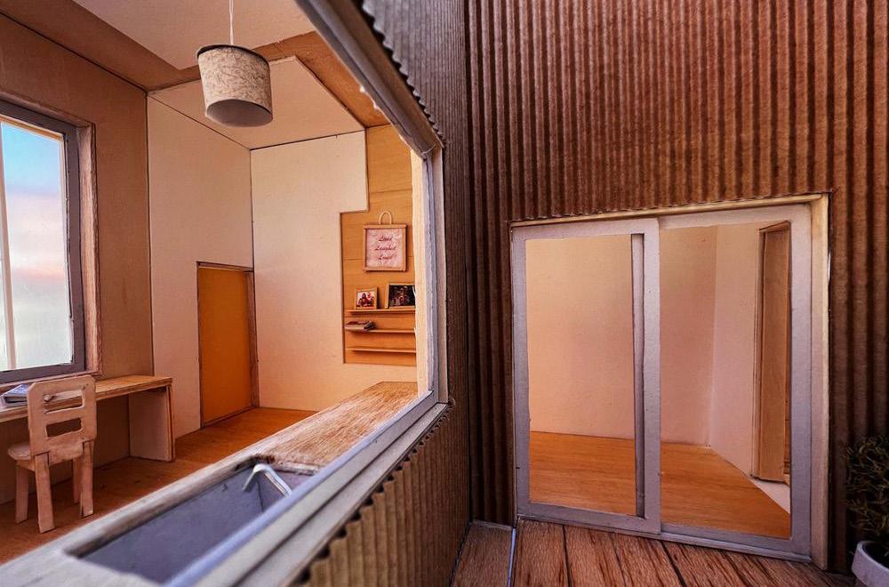 The layout is modular with systematic furniture units that can be retracted. The floor mimics a sliding door that can maximize the living area space in the daytime, which can become a sleeping area.