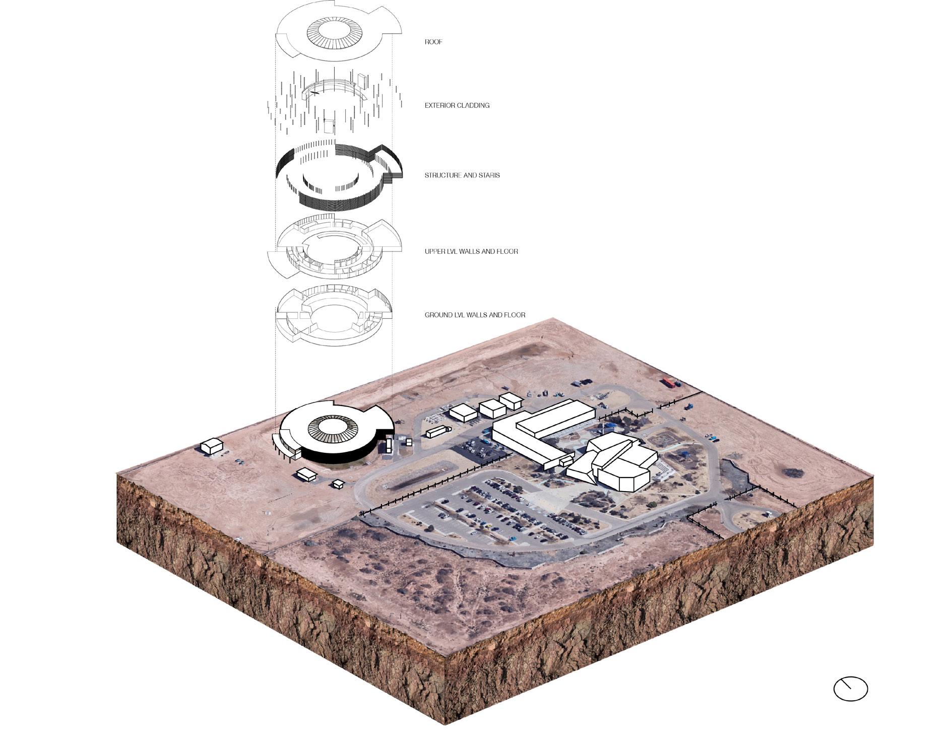 At the immediate site is the Kay Bailey Hutchinson Desalination Plant, where fresh water is produced daily for the East El Paso, TX. Through processes such as reverse osmosis, millions of gallon of brackish water is filtered and separated into drinking water and brine concentration. This brine concentration, proved to be toxic to plants and soil is disposed temporarily at the immediate site, adjacent to the plant.