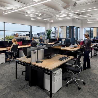 The open office offers incredible views, adjustable height sit/stand desks and ergo dynamic chairs that all help encourage employee wellness. David Wakely