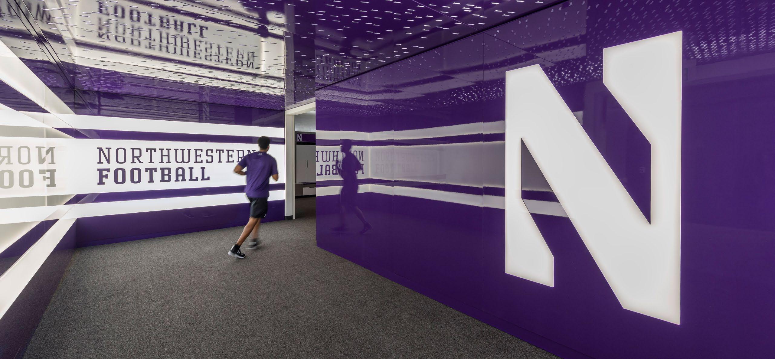 The approach to branding was to strike the perfect balance between the power of athleticism and the sophistication of Northwestern’s academic excellence. Early integration of graphics in the architectural process allowed for brand-driven imagery and spirited content that contributed to architectural decisions. Northwestern’s trademark purple color motif is highlighted throughout the Center on interactive touchscreens, backlit wall panels and overhead lighting accents.