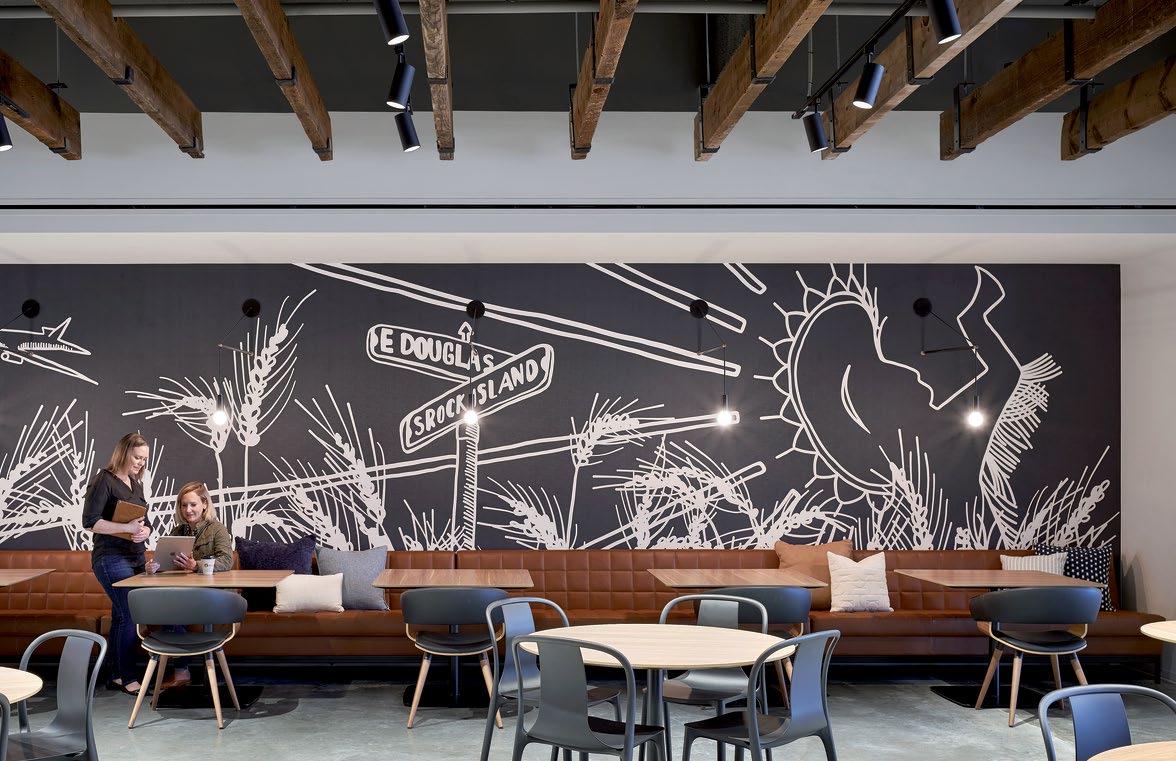 Cargill Protein’s new headquarters celebrates the why behind Cargill’s mission. The theme “families feeding families” ties visitors to the protein process and the farmers, ranchers, chefs, scientists and engineers working together to nourish the world.