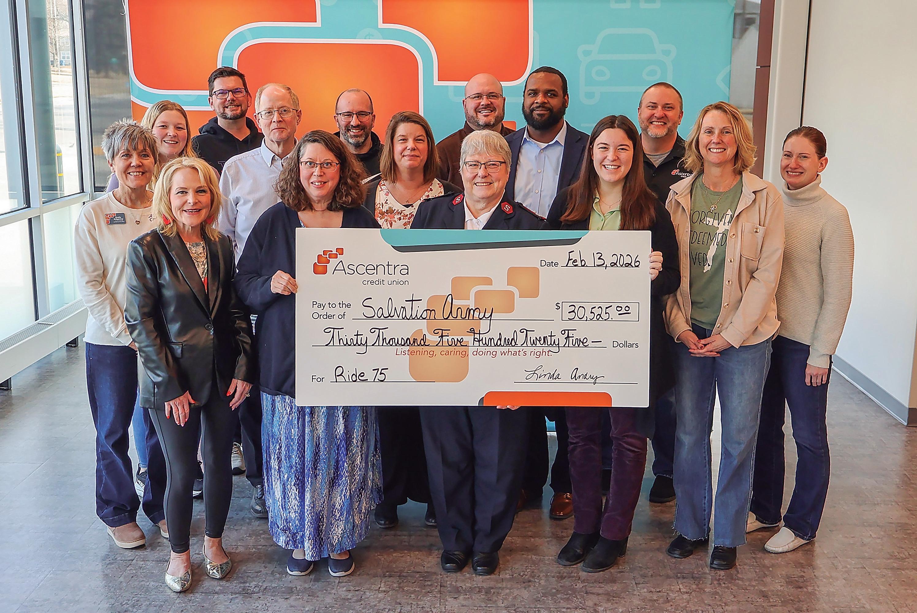 Bettendorf, IA - Ascentra Credit Union’s rebranded holiday auto loan promotion raised a record $30,525 for local Salvation Army branches in the Quad Cities, Clinton and Muscatine communities as the credit union marked its 75th anniversary in 2025.