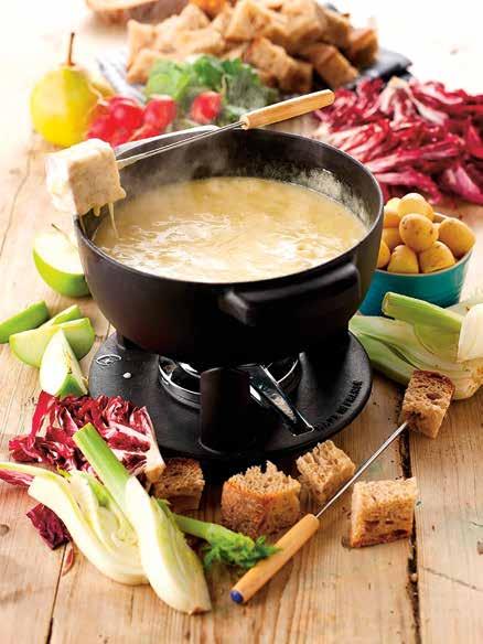 4. Serve hot cheese and dip the meat, veggie, seafood, bread or fruit of your choice.