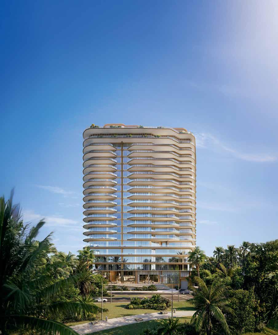 Inspirado en el exuberante paisaje de Coconut Grove —con sus banianos, caobas y su ritmo relajado— el arquitecto Luis Revuelta diseñó un edificio que respira como los árboles que lo rodean. Sus curvas suaves transmiten una sensación de calma que refleja la serenidad del entorno. El proyecto rinde homenaje al alma del vecindario más antiguo de Miami, fusionando historia, herencia multicultural y una vibrante escena artística con el lujo contemporáneo.