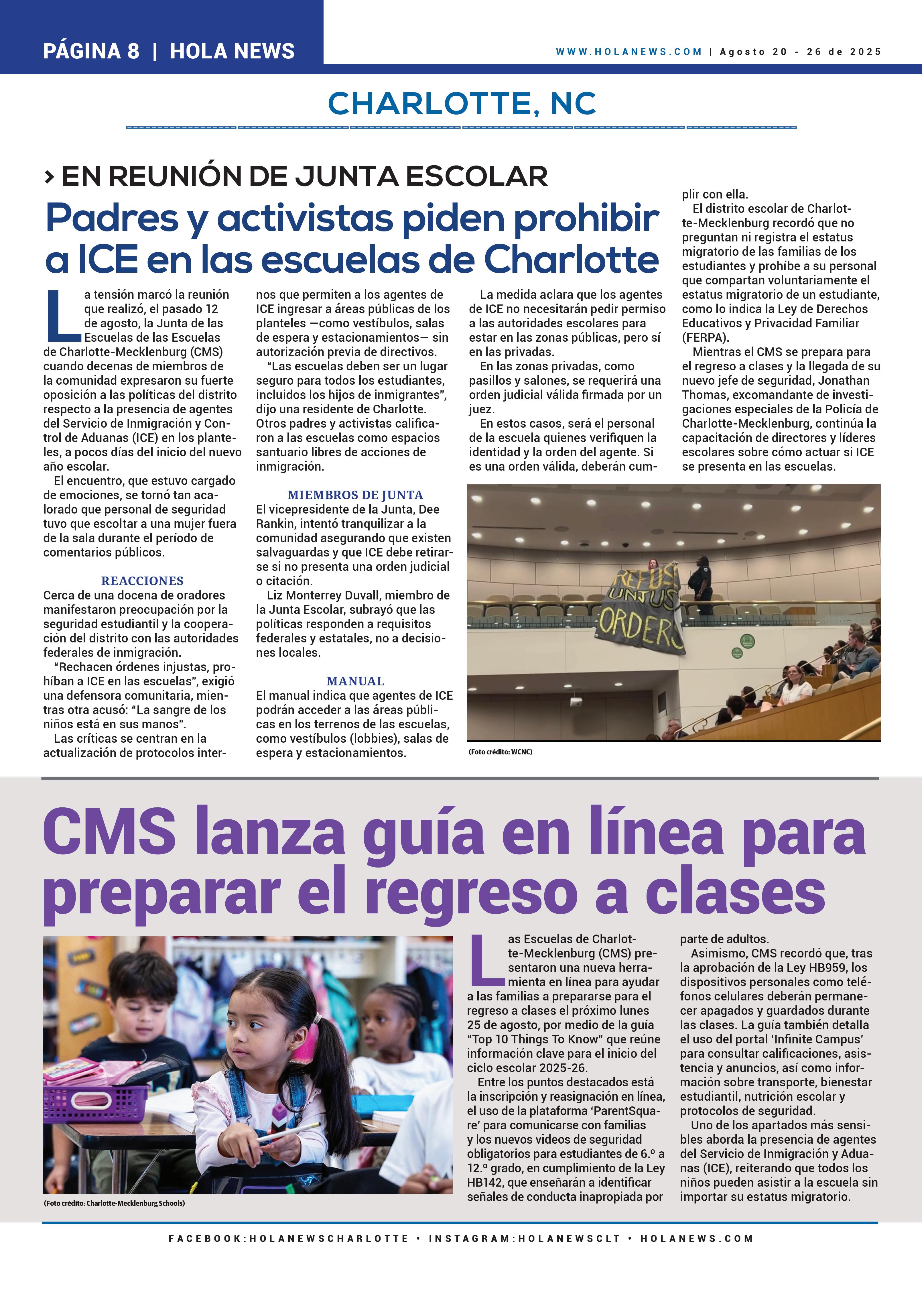 DE VUELTA A CLASES | Charlotte 8/20/25 by Hola News - Issuu
