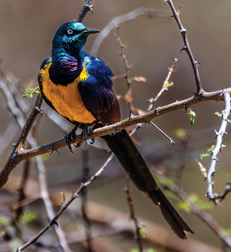 Below: We are at Samburu, Kenya. While on safari in this desert area, I was able to capture this beautiful Goldenbreasted Starling. I didn’t know how may different birds we would see and photograph. JUST AMAZING.