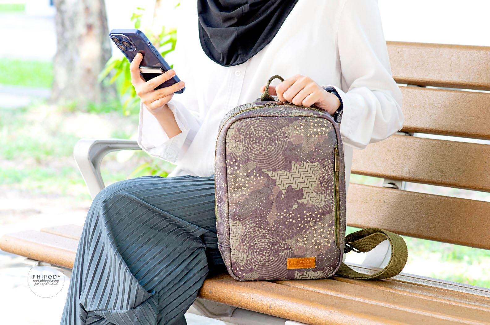 For wherever your day takes you, the on-the-go style Zuma Sling keeps you organized. Open the extra wide DoubleZip closure fully to the spacious main compartment. Accordion wings allow you to see deep inside your bag without spilling its contents. A large multifunction slip pocket holds your tablet, gadgets, book, and more. The lining zipper pocket organizes your smaller items. A front vertical zipper pocket secures your phone and essentials for quick access. Its genderneutral rectangular design lends the Zuma Sling equally to styles ranging from retro or fandom to rugged or modern, plus anything in between. Adjust the crossbody shoulder strap and clip on either the right or left D-Ring. Move the strap over your shoulder to keep the sling bag in front of you or place the strap across your chest to wear it on your back. When not in use, hang your Zuma Sling from its loop for easy storage.