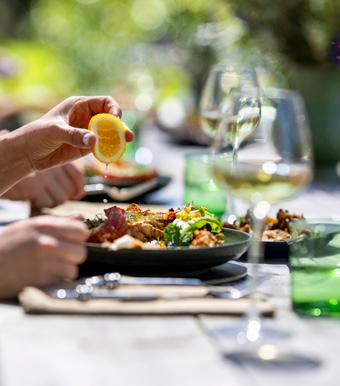 However you spend your day, finish it by mingling at the outdoor fireplace with the chef’s tantalising canapés before dining on fresh local cuisine. The head chef and his team specialise in showcasing the region’s best produce, and bring out the most subtle of flavours to ensure a mouth-watering experience. Fruit, berries, tomatoes and free-range eggs grown in the estate’s gardens all feature on the menu, and local wine, including that produced on the property, is an integral part of the three-course dinner.