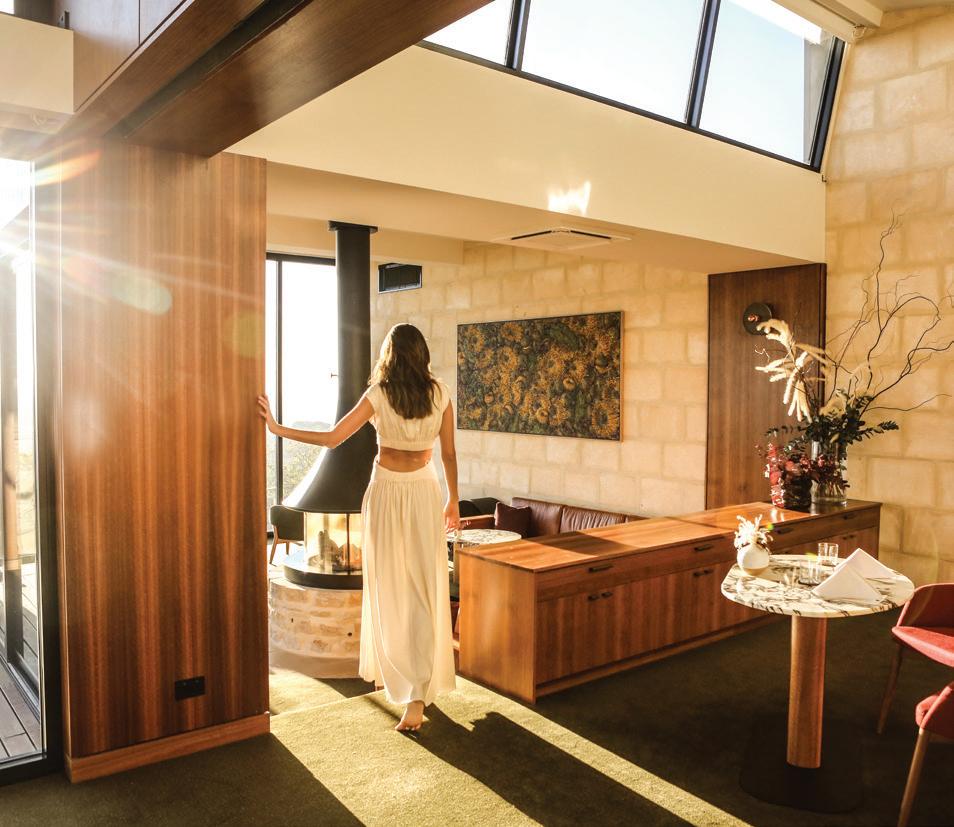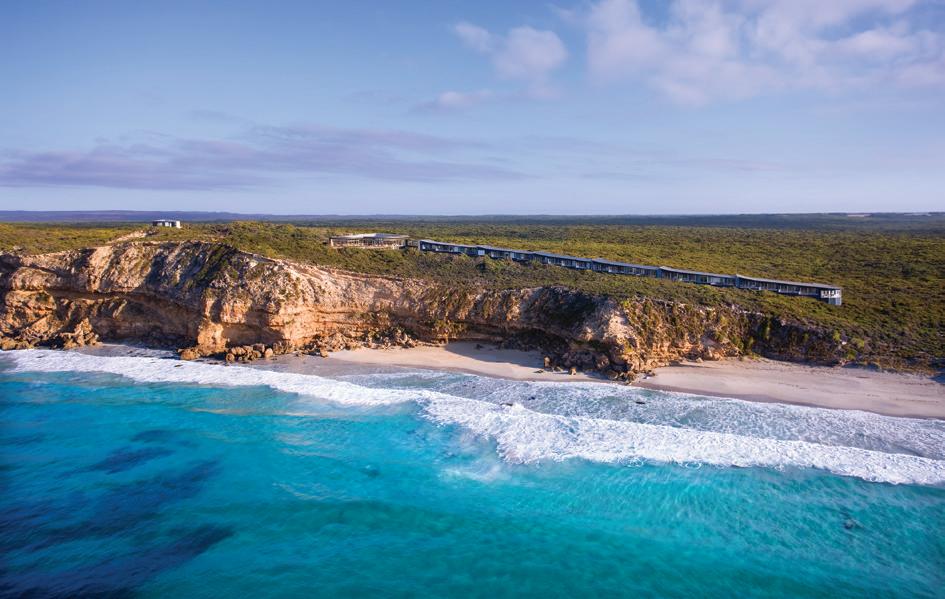 Twenty-five luxury suites ease along the curve of Kangaroo Island’s limestone cliffs, each with open views of the Southern Ocean and rolling coastal wilderness.