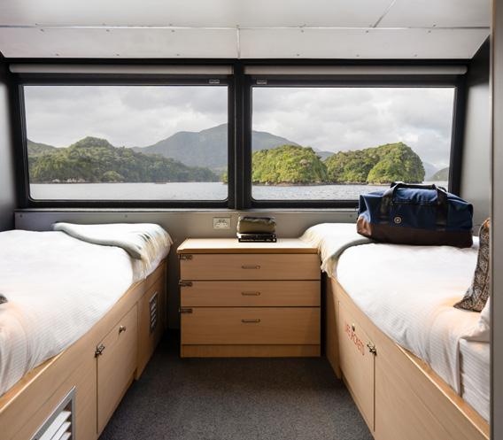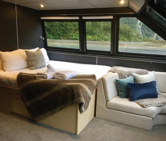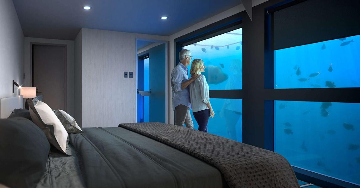 Sleep amidst the pulse of the reef. Descend into your underwater sanctuary and surrender to the ocean’s quiet spectacle as marine life drifts past floor-toceiling windows. Begin your day with a scenic cruise through the Whitsundays, then slip beneath the waves to your private suite, elegantly appointed with premium bedding and ensuite.