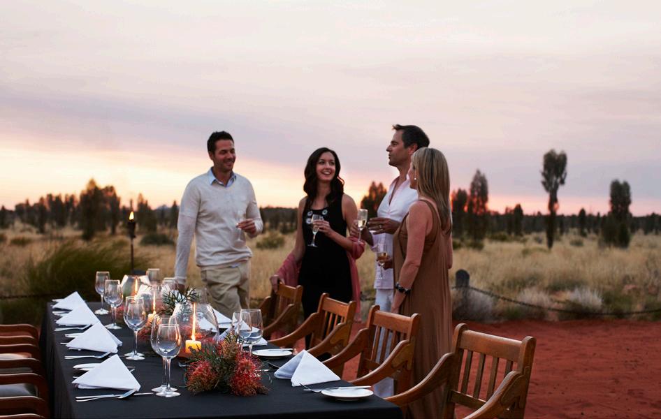 Dine where the desert whispers its stories. Perched atop a silent red dune, a four-course feast unfolds under the Southern Desert sky, with Uluru and Kata Tjuṯa glowing on the horizon. Every dish—crafted from native Australian ingredients and expertly paired with Penfolds wines—celebrates the land.