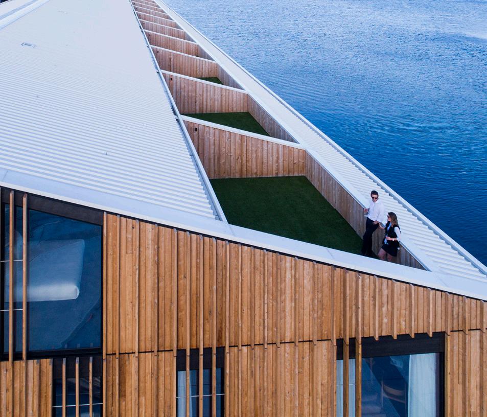 The hotel’s five stunning The Landing Suites, designed by Cheshire Architects and Lucas Design Associates, are inspired by bays at sister property The Landing, with three on the 10th floor and two in a glass pavilion atop the adjacent century-old Buckland Building.