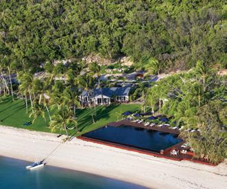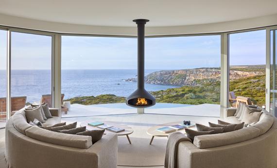 Perched on a clifftop and cantilevered over the still and tranquil Chamberlain River, the ten-suite homestead is surrounded by avenues of frangipani trees. Interiors are chic yet cosy and comfortable,