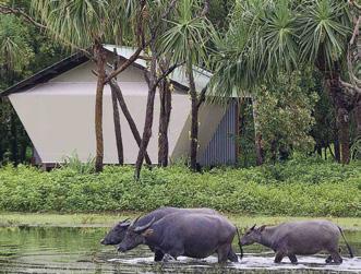 • Over 300 square kilometres of private concession is waiting to be discovered. The four distinct habitats are the floodplains and wetlands full of magpie geese and crocodiles, savannah woodlands inhabited by brumbies, buffalo, dingoes and wallabies, beautiful melaleuca forests, and the riverine environment. Explore with expert field guides via airboat, open-top safari drive, walking, quad bikes, and more.