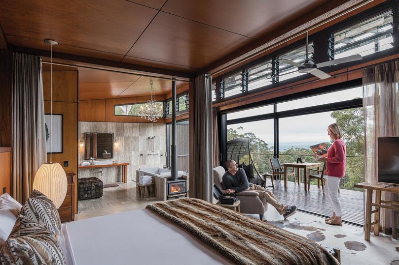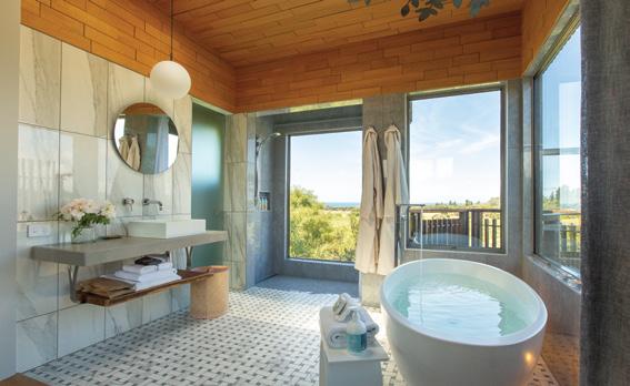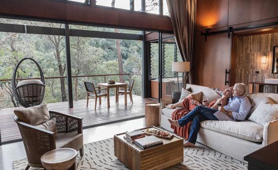 and each guest suite has a private deck with spectacular views. Floor-to-ceiling windows bring nature inside, and some suites feature freestanding outdoor bathtubs for soaking under a blanket of stars.