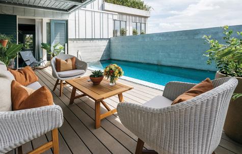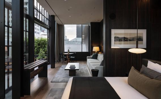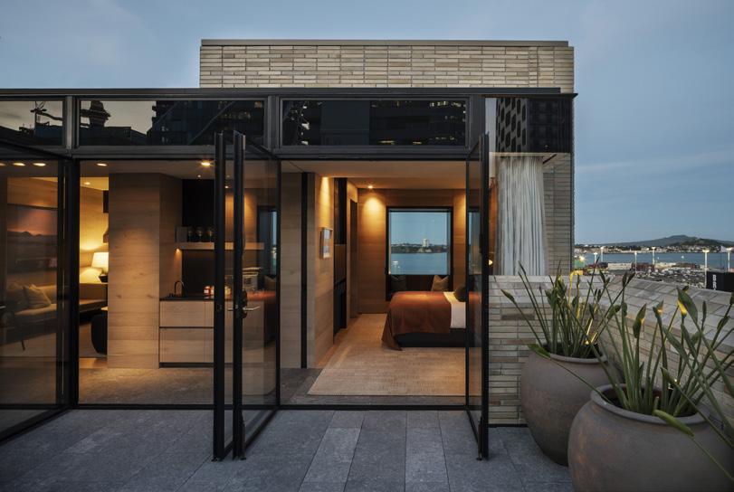 • Rangihoua Suite – 65 sqm city skyline views and large outdoor terrace with fireplace.